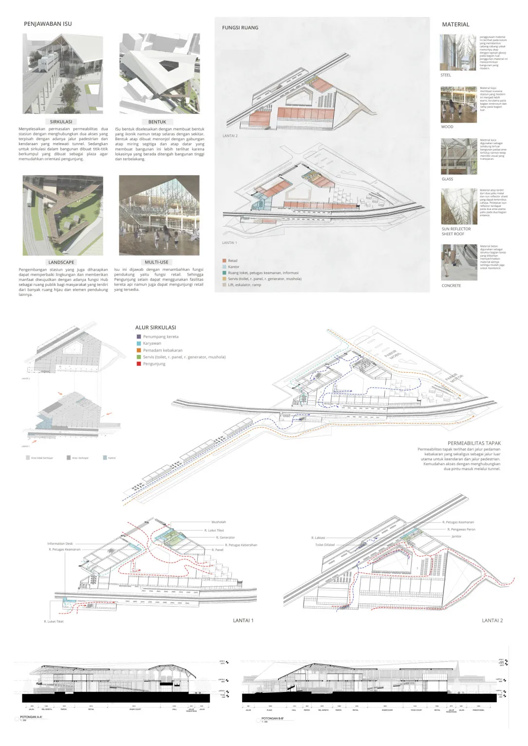 Second, a green space that was converted into a pleasant area that locals may also use for pleasure is directly connected to the main station, with the outside ramp acting as a focus of interest toward that location. Third, all sections are connected to make the hub a more welcome and accessible destination.